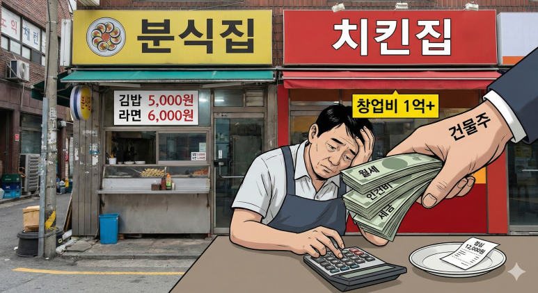 분식집을 오픈하려해도 치친집을 오픈하려해도 1억이넘는 세상에 살고 있고 점심한끼 먹기위해서 식당을 가도 1만원이 넘는 지금의 우리는 박리다매보다는 수익성위주의 사업이 당연히 수익율이 높을것이고 인건비위주의 비즈니스는 결국 건물주만 배불리는 사업형태로 내몸은 부서지고 직원급여와 세금을 띄면 남는것이 없는 현실입니다.
