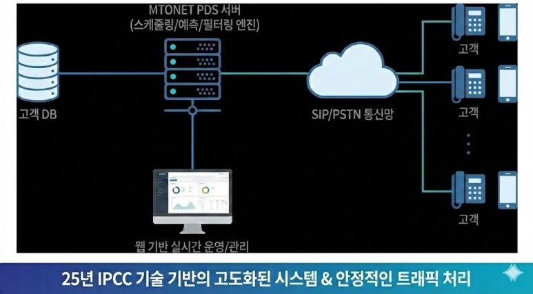 오늘은 콜센터 및 컨택센터의 아웃바운드 업무 효율을 혁신적으로 높여주는 AI PDS(Predictive Dialing System, 예측 다이얼링 시스템) 솔루션을 소개합니다. 특히, 엠투넷만의 기술적 우위와 RESTful API를 통한 쉽고 강력한 연동성에 초점을 맞춰 설명해 드리겠습니다.