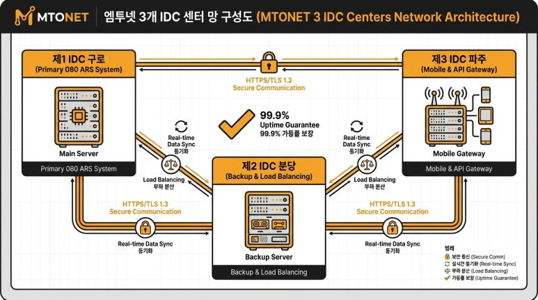 🏢 엠투넷 3개 IDC 센터 망 구성도 - 99.9% 안정성 보장!